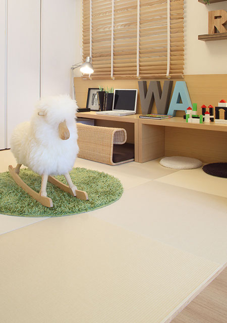 細致的紋路令人倍感新鮮。如果使用無邊型榻榻米,可以從視覺上放大空間。